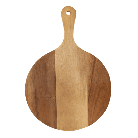 10 1/2" x 14 1/2" Round Acacia Wood/Slate Serving Board with Handle