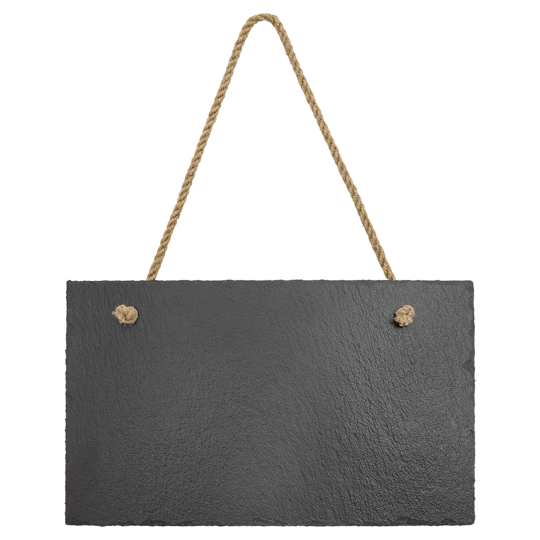 Expertly crafted from durable slate, this 11 3/4" x 7" rectangle decor piece adds a touch of elegance to any space. Complete with a convenient hanger string for easy display, this versatile piece is perfect for showcasing photos, artwork, and more. Enhance your home decor with this stylish and functional accent.